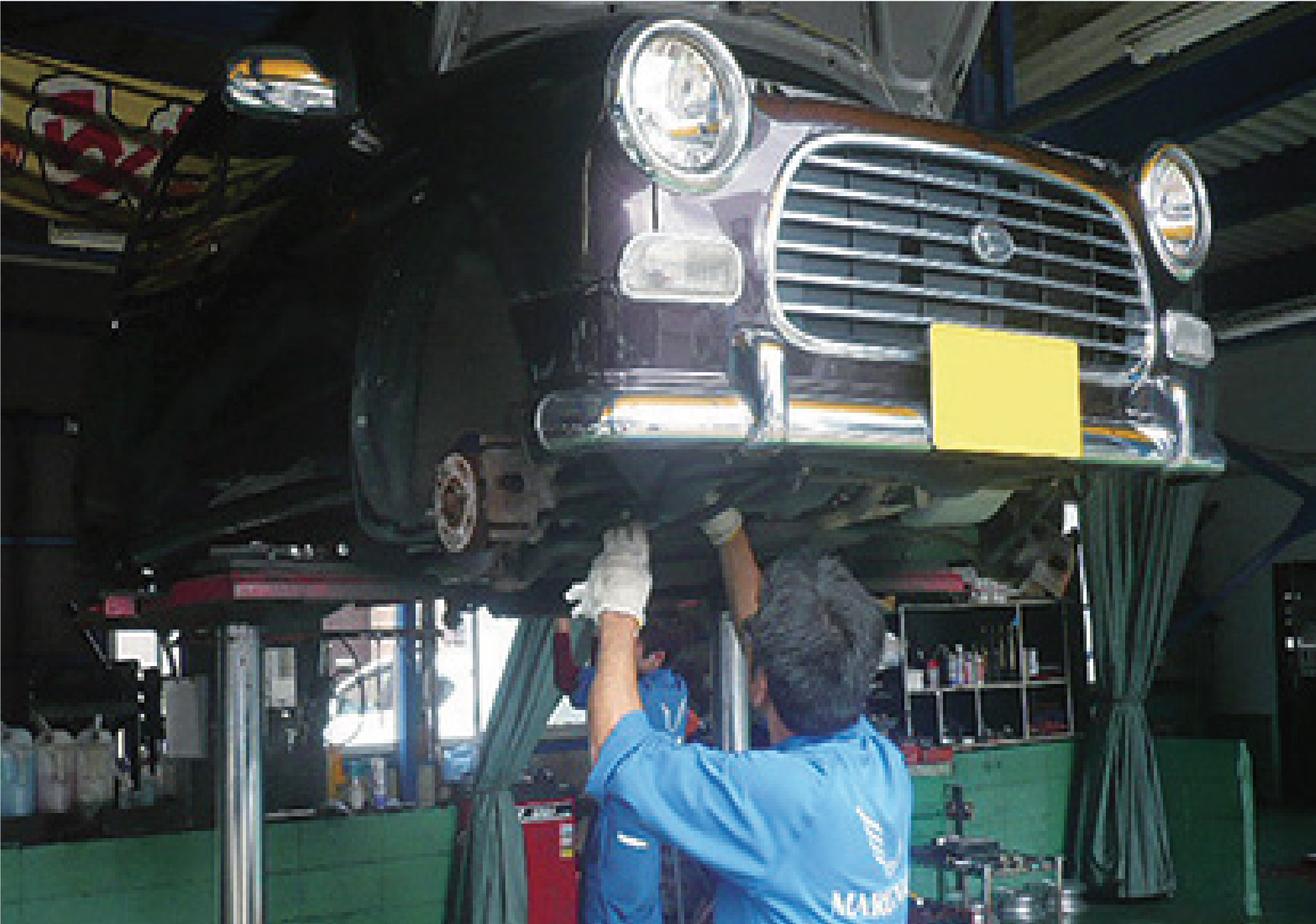 整備工場での点検。