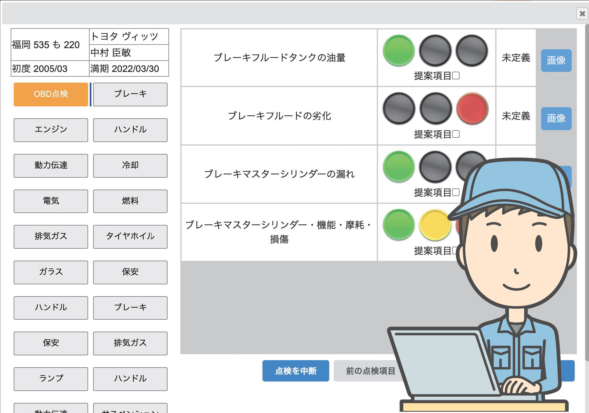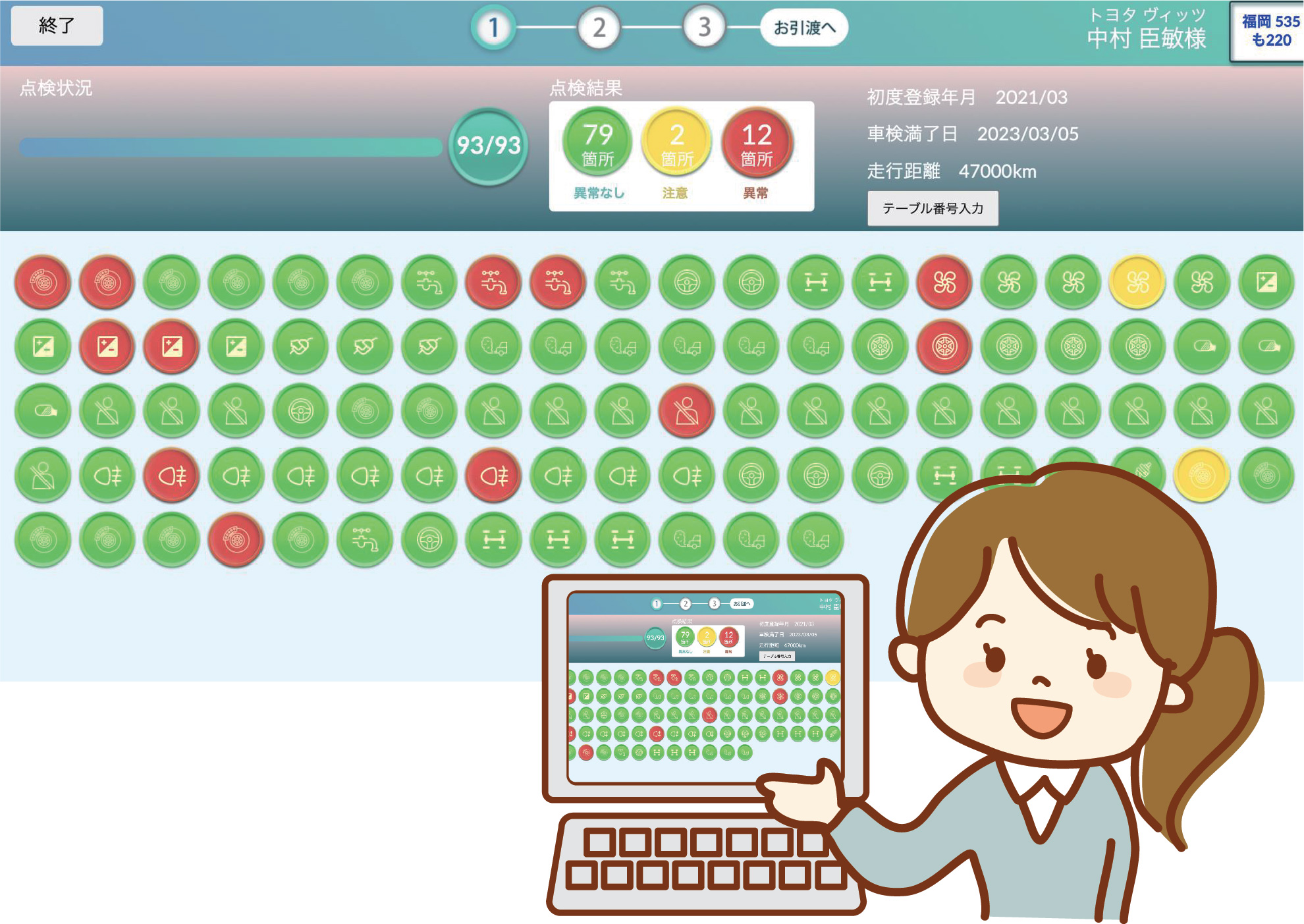 点検結果は端末に入力。