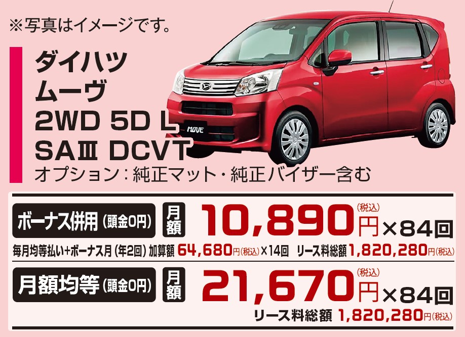 Wタイヤ車は6000円UPとなります。